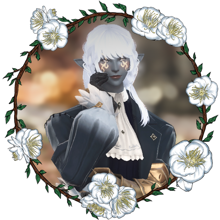 About: A bit shorter than the average elezen, ears short and face always turned down in a slight frown. He swears he doesn't grimace, but you can always find him looking like he might sigh in disappointment at you. Despite how confident he appears to be or looks, he is two seconds from running out of a room from anxiety. Though there is something odd about the way he carries himself, how he speaks and were those feathers in his pocket? Surely not... right? Who knows, maybe he has a bird at home.